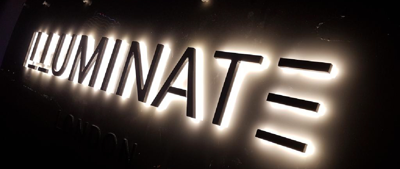 20mm acrylic with face and partial sides painted along with halo illumination.